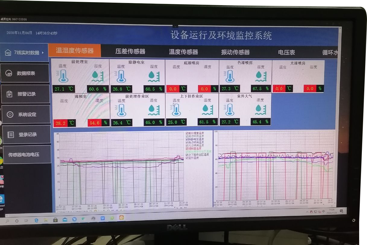 查看更多通過無線(Lora)傳輸,采集車間環(huán)境溫濕度和粉塵的數(shù)據(jù)并上傳到服務器電腦上,在服務器電腦上的平臺軟件上展示: