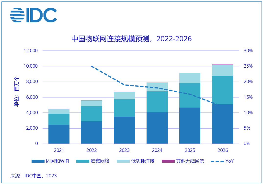 查看更多《"十四五"國家信息化規(guī)劃》提出,到2025 年,以5G、物聯(lián)網(wǎng)、云計算、工業(yè)互聯(lián)網(wǎng)等為代表的數(shù)字基礎(chǔ)設(shè)施能力達到國際先進水平。中國正大力推動物聯(lián)網(wǎng)與其他新一代信息技術(shù)加速集成和融合,物聯(lián)網(wǎng)連接規(guī)模和應用持續(xù)增長。IDC預測,2022年達56億個,到2026年將增至約102.5億個,...