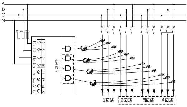 3、可同時監(jiān)測1至4個回路的用電數(shù)據(jù),更適用于配電柜(動力柜)、控制柜內(nèi)的出線回路計量;