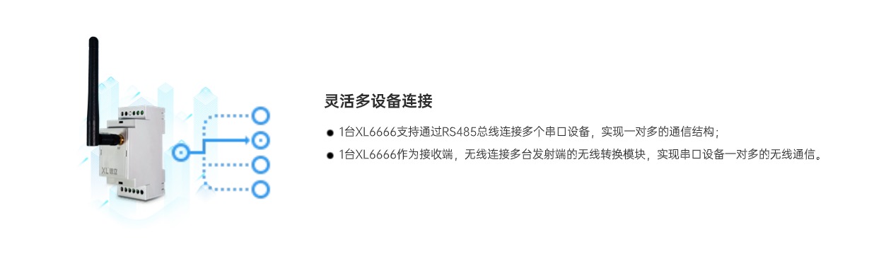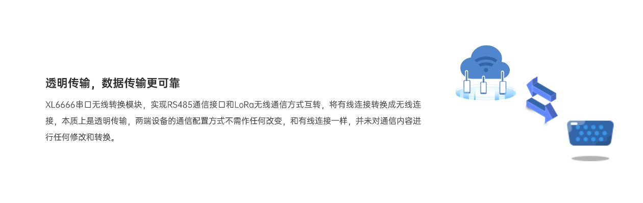 XL6666串口無線轉(zhuǎn)換模塊,作為控制器、測控儀表、智能設(shè)備等接入無線傳感網(wǎng)絡(luò)的節(jié)點(diǎn)裝置,將RS485串口通信轉(zhuǎn)換成LoRa無線通信,實現(xiàn)RS485通信口和LoRa無線通信相互轉(zhuǎn)換。有效解決設(shè)備間連接與數(shù)據(jù)傳輸?shù)葐栴},使傳統(tǒng)串口設(shè)備輕松融入物聯(lián)世界。
