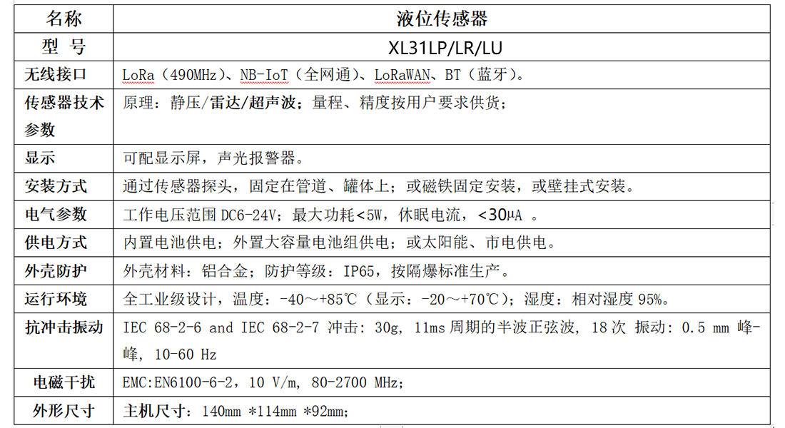 XL31LP智能液位傳感器,是按低功耗、隔爆標準研發(fā)、設計、生產(chǎn)。用于監(jiān)測,儲罐,水箱、水池,管井、管溝,河流、湖泊,等水位。