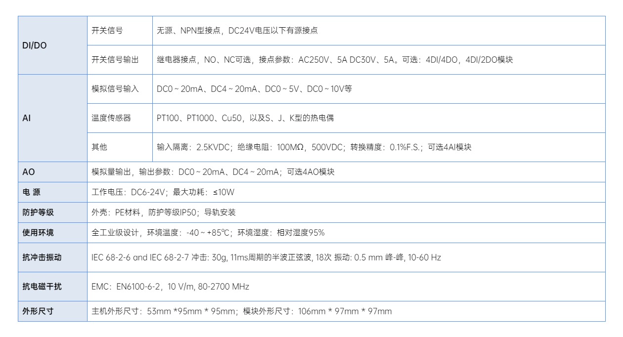 I/O模塊可獨(dú)立使用,支持RS485和標(biāo)準(zhǔn)的Modbus RTU通信協(xié)議輸出數(shù)據(jù)。