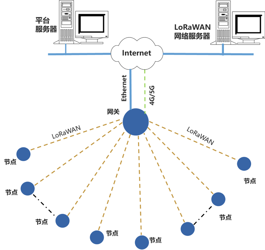 ? LoRaWAN網(wǎng)關(guān)通過(guò)Ethernet接口,或4G/5G,聯(lián)接云端LoRaWAN網(wǎng)絡(luò)服務(wù)器。