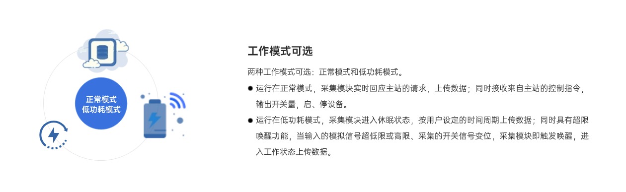 XL65無線采集模塊,是一款多功能、低功耗的數(shù)據(jù)采集設(shè)備,集成RS485通信口和豐富的I/0口(1AI、3DI、1DO),支持多種無線通信方式上傳采集的信號和數(shù)據(jù)??蛇x電池供電,適用于更多供電不便的場景。