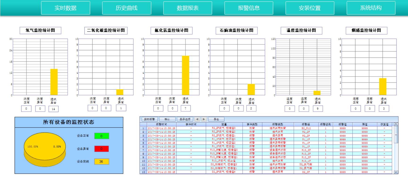 異常情況發(fā)生,如溫度突變,氣體泄漏等等,就地聲光報警,顯示報警信息;