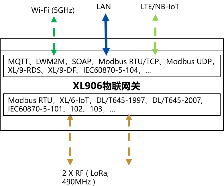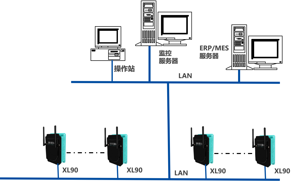 如下圖所示,XL90,將數(shù)據(jù)上傳給企業(yè)內(nèi)部的多個(gè)系統(tǒng)軟件平臺(tái);通過(guò)LTE(4g)/NB/GPRS將數(shù)據(jù)上傳至云服務(wù)器;