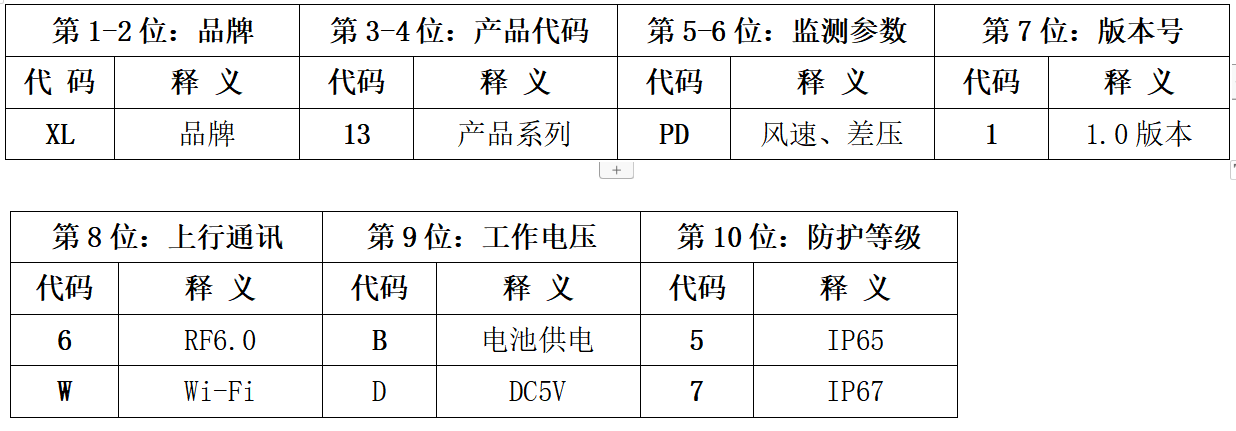 三、XL13無線風(fēng)速(差壓)傳感器訂購信息表
