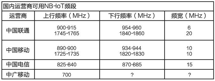 NB-IoT使用了授權頻段,有三種部署方式:獨立部署、保護帶部署、帶內部署。全球主流的頻段是800MHz和900MHz。中國電信會把NB-IoT部署在800MHz頻段上,而中國聯(lián)通會選擇900MHz來部署NB-IoT,中國移動則可能會重耕現(xiàn)有900MHz頻段。具體如表所示: