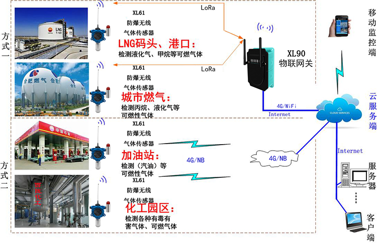 化工園區(qū)生產(chǎn)安全監(jiān)控系統(tǒng),基于無線傳感器、智能環(huán)境監(jiān)測終端、物聯(lián)網(wǎng)關(guān)、無線采集裝置、監(jiān)控服務(wù)器和XL.VIEW上位機(jī)監(jiān)控軟件等,實(shí)現(xiàn)對園區(qū)生產(chǎn)環(huán)境的各項(xiàng)要素(如有毒有害氣體、易燃易爆氣體、風(fēng)向風(fēng)速、氣壓、雨量、溫濕度、粉塵、煙感等)進(jìn)行實(shí)時采集、無線傳輸、監(jiān)測與預(yù)警。