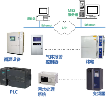 工廠的各種類生產設備、生產系統(tǒng)及監(jiān)控系統(tǒng),需要通過廠內LAN接入MES。