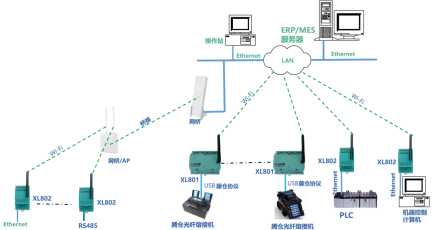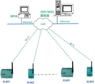 XL80主機通過Ethernet或Wi-Fi,接入LAN,聯接MES服務器。