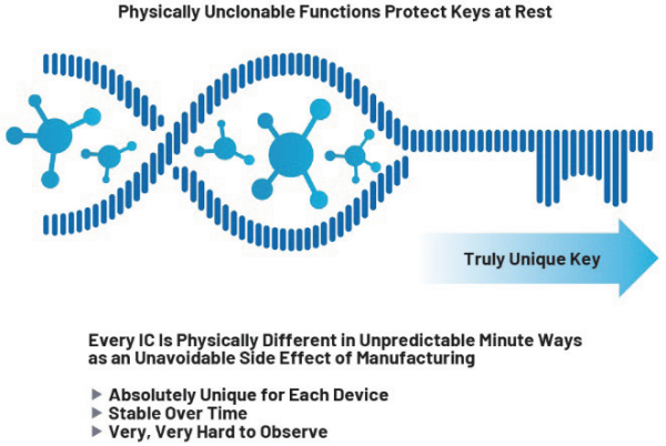 不幸的是,由于直接探測會試圖監(jiān)視微電路的內部結構,因此通用微控制器中常用的存儲器技術(即 EEPROM或閃存)并不安全。利用掃描電子顯微鏡(SEM),攻擊者無需很高成本,即可直接監(jiān)視存儲器的內容。為了降低此風險,半導體行業(yè)開發(fā)了“物理不可克隆功能”(PUF) 技術。PUF 用來從微電路的固有物理屬性中導出唯一密鑰。這些因芯片而異的屬性很難直接探測,因此難以通過直接探測提取生成的密鑰。在一些情況下,PUF派生密鑰會對信任根內部存儲器的其余部分進行加密,從而保護設備上存儲的所有其他密鑰和憑據(jù)。