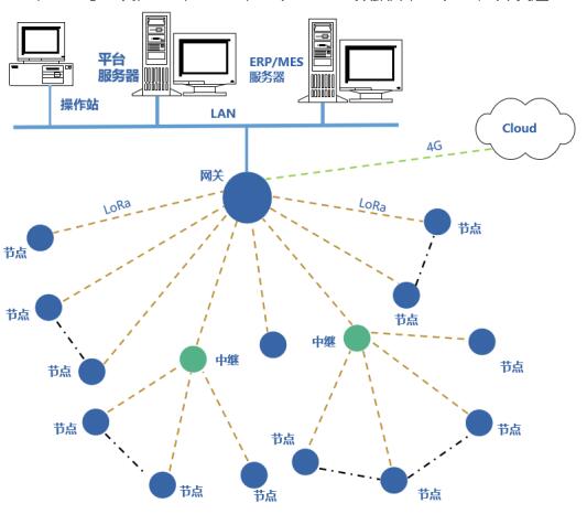網(wǎng)關(guān)無線讀取所覆蓋區(qū)域內(nèi)監(jiān)測點(diǎn)的數(shù)據(jù),進(jìn)行處理、協(xié)議轉(zhuǎn)換,通過局域網(wǎng)轉(zhuǎn)發(fā)數(shù)據(jù)至MES、ERP、EMS等工廠數(shù)字化平臺(tái),對數(shù)據(jù)進(jìn)行分析,根據(jù)不同的報(bào)警閾值實(shí)現(xiàn)預(yù)警。