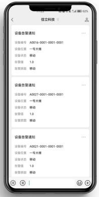 報(bào)警信息通過微信公眾號(hào)推送給管理人員,隨時(shí)隨地掌握現(xiàn)場設(shè)備動(dòng)態(tài),無需通訊費(fèi)用,更省成本。