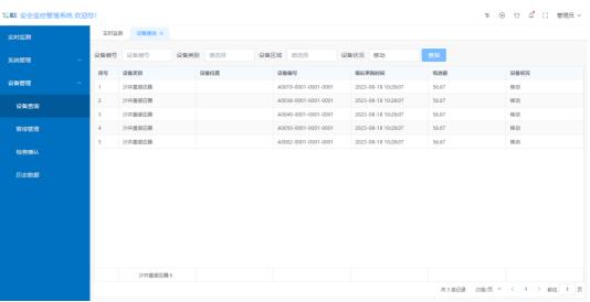 可根據(jù)設(shè)備編號(hào)、類別、區(qū)域、狀態(tài)等條件,篩選查詢需要查看的設(shè)備信息;