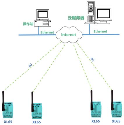 考慮到水下監(jiān)測的信號問題,溫度變送器選擇防水電纜通過RS485通信方式將數(shù)據(jù)傳輸?shù)?/span>XL65無線采集器;由于戶外偏遠(yuǎn),XL65無線采集器采用4G通信,不受距離限制,將數(shù)據(jù)直接上傳至云平臺。