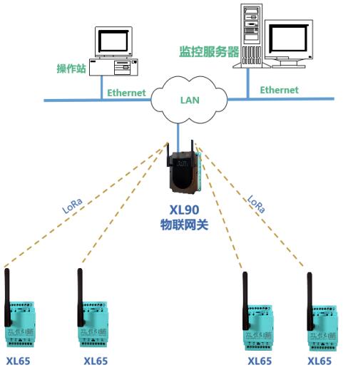 采用LoRa無線傳輸,需選XL90網(wǎng)關(guān)作為無線接收端,進行協(xié)議轉(zhuǎn)換和數(shù)據(jù)轉(zhuǎn)發(fā)。LoRa頻段可按不同國家、地區(qū)規(guī)定供貨。