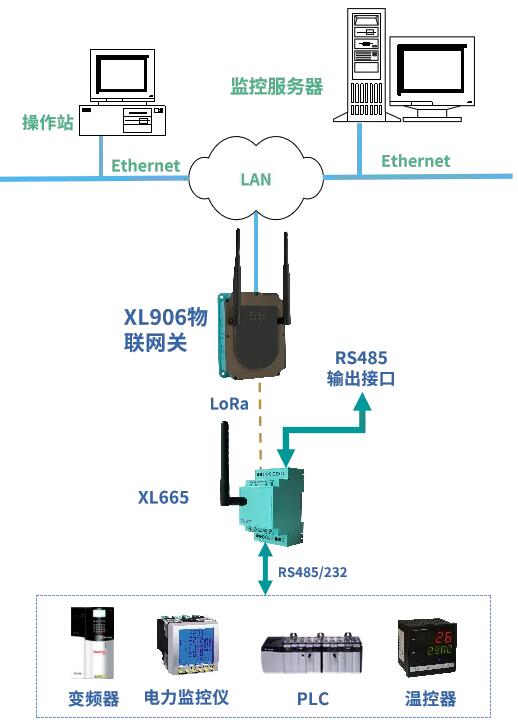 2、經(jīng)由XL665無線轉(zhuǎn)換器輸出的LoRa信號(hào),可上傳至物聯(lián)網(wǎng)關(guān),接入監(jiān)控軟件平臺(tái);