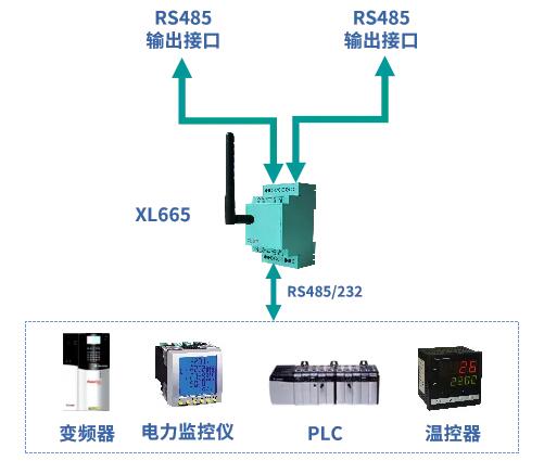1、經(jīng)由XL665無線轉(zhuǎn)換器輸出的RS485信號(hào),可接入任何支持RS485及儀表通信協(xié)議的設(shè)備;