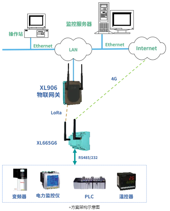 l 經(jīng)由XL665多路通信模塊輸出的LoRa信號,可上傳至物聯(lián)網(wǎng)關(guān),接入監(jiān)控軟件平臺;