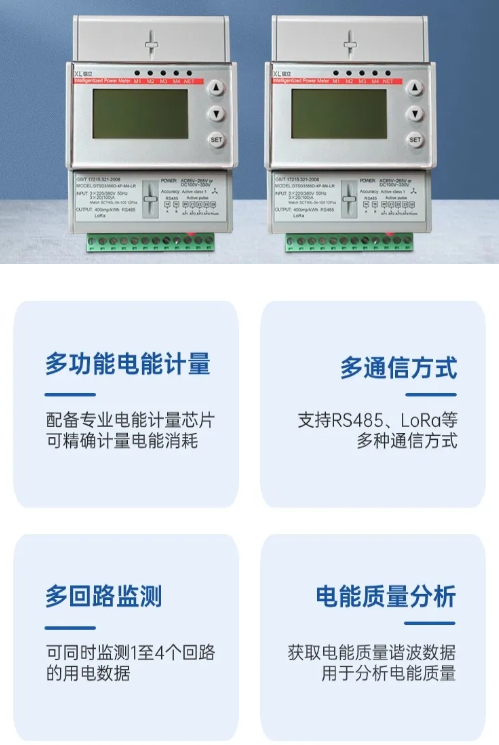 選擇DTSD3366XL無線多功能電表,監(jiān)測各節(jié)點(diǎn)用電能耗情況。