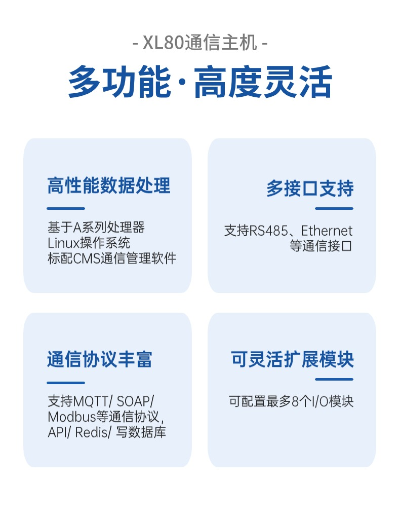 選擇XL80通信主機(jī),配備RS485/Ethernet等通信接口,可通過(guò)串口有線通信或LoRa無(wú)線通信讀取工控設(shè)備數(shù)據(jù),轉(zhuǎn)發(fā)至企業(yè)MES或監(jiān)控平臺(tái)。